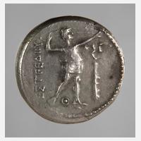 42 v. Chr., Avers Büste des Sol im Strahlenkranz, Revers Schrein der Venus, Silber, D oval 16-18 mm, G ca. 3,56 g, ss+.