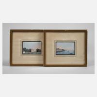 Blick auf eine Promenade am Meer, betitelt "Chiatamonde" und Partie in Pompeji, betitelt "Porta di Pompeo", Gouache auf Papier, auf Rahmenrückwand Klebezettel "Italienisch 1800–1820/Gouache-Miniatur/erworben 1919", minimal fleckig, unter Passepartout und hinter Glas gerahmt, Darstellungsmaße ohne Schrift ca. 7 x 10 cm.