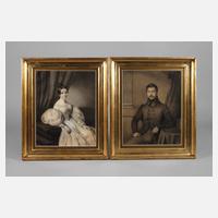 Bildnis einer jungen Frau im weißen Kleid mit sogenannten Hammelkeulenärmeln und zum Betrachter gerichtetem Blick, auf der Rahmenrückwand bezeichnet "Frau Rosina Merian geb. Keller, geb. 1813 in Basel gest. 1849 in Mammern bei Stein a. Rhein ..." sowie Bildnis eines jungen, auf einem Stuhl sitzenden Herren, auf der Rückseite bezeichnet "H. Albert Merian Keller, geb. zu Basel 1808 gest. ... 1890" weiterhin maschinenschriftlicher Stammbaum, Kohle mit Weißhöhung auf Papier, eine Arbeit signiert unten rechts "J. Notz", leicht gegilbt und Portrait der Frau mit einigen Wurmlöchlein, unter Passepartout und hinter Glas gerahmt, Passepartoutausschnitt ca. 30 x 23 cm. Künstlerinfo: schweizerischer Portrait- und Genremaler (1802 Oberstrass bis 1862 Zürich), Studium in Zürich bei Hans Jakob Oeri und ab 1822 Studium an der Akademie in München, 1923–24 in Aarau tätig, ging 1927 nach London, 1842–43 Italienreise, 1844 Rückkehr in die Schweiz, Mitglied der Zürcher Künstlergesellschaft, Quelle: Thieme-Becker, Nagler, Matrikel der Münchner Akademie und Wikipedia.