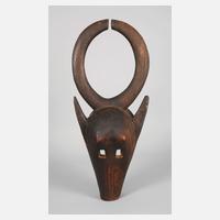 Mali, 20. Jh., der Volksgruppe der Bambara zugeordnet, dunkel gefasstes Hartholz, beschnitzt in Form eines stark abstrahierten Antilopenhauptes, dem Stammestier der Bambara, gute Erhaltung mit leichten Altersspuren, H ca. 63 cm.