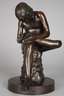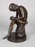 Ende 19. Jh., unsigniert, recto Plakette "Pastor Tido" [span. Schäfer], nach dem Vorbild des „Kapitolinischen Dornausziehers”, Kopie eines späthellenistischen Originals, ausgestellt im Konservatorenpalast in Rom, nackter Jüngling, auf einem Felsen sitzend und einen Dorn aus seinem Fuß ziehend, altersgemäß gut erhalten, H 28,5 cm.