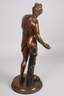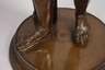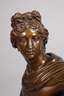 Ende 19. Jh., Bronze nuanciert dunkel und braun patiniert, Rezeption eines antiken, im 4. Jahrhundert vor Christus geschaffenen Bronze-Originals, das dem Bildhauer Leochares zugeordnet wird und heute im Belvederehof des Vatikans in Rom ausgestellt wird, der Gott Apollo ist als Akt, nur mit einem Cape bekleidet, neben einem Baumstamm dargestellt, in der ausgestreckten Hand soll ein Bogen befindlich gewesen sein, von dem jedoch nur der Griff zu sehen ist, am Baumstamm windet sich noch die von Apoll getötete Python, die das Orakel von Delphi bewachte, auf gekehltem Rundsockel mit Lorbeerstab, altersgemäß gut erhalten, H 65 cm.