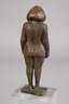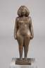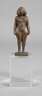 2. Hälfte 20. Jh., unsigniert, Bronze braun patiniert, expressionistische, abstrahierte Darstellung eines stehenden weiblichen Aktes mit offenen, schulterlangen Haaren, auf kleiner rechteckiger Plinthe, auf Sockel aus Glas montiert, dieser mit kleinem Chip an der Ecke, sonst altersgemäß gut erhalten, H Bronze 13 cm, H gesamt 21 cm.