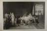 Darstellung des luxuriösen Lebensstils der Bewohner von Pompeji, nicht ahnend, welche Katastrophe bald über sie hereinbrechen wird, unter der Darstellung im Druck betitelt "La maison du Poëte au Dernier jour de Pompeï" (Das Haus des Poeten am letzten Tag von Pompeji), Stahlstich, um 1870, unter der Darstellung im Druck rechts bezeichnet "Ballin sculp." und links "J. Coomans pinx.", im Randbereich etwas wasserrandig, hinter Glas gerahmt (Rahmen mit geringen Verlusten), Darstellungsmaße ohne Schrift ca. 55 x 83 cm. Künstlerinfo: frz. Maler und Graphiker (1842 Boulogne-sur-Mer bis 1885), Schüler von Noël, 1868-80 Teilnahme an den Pariser Salons, Übersiedlung nach England, Quelle: Thieme-Becker und Internet.
