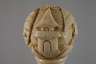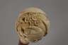 1920er Jahre, hoher Kugelknauf aus Galalith, verziert von Chinoiserien, mit zwei figürlichen Darstellungen, Edelholzschuss, Hornzwinge, trocknungsrissig, H 93 cm.