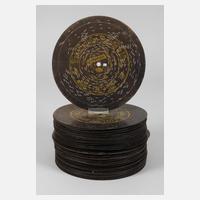 um 1900, ca. 45 Stück, Symphonion mit unterschiedlichen Liedangaben, Alters- und Gebrauchsspuren, D je 19,5 cm.