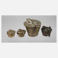19. Jh., vier Stück, Bronze mehrteilig gefertigt und montiert, alle gemarkt, nicht komplett, Alters- und Gebrauchsspuren, H max. 6,5 cm.