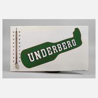 Mitte 20. Jh., gemarkt Ferro-Email, langrechteckiges Schild, vierfarbig emailliert, mit Werbeemblem und Umschrift, linker Hand eingelassenes Thermometer mit Angabe in Celsius, minimale Korrosionsspuren, sonst Z 1, Maße 40 x 64 cm.