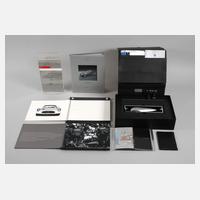 2002/2003, bestehend aus SLR Mappe mit Hinweisen zu SLR Unlimited Events, Infobrief, kleine Dokumententasche und zwei Kofferschildern, Presseinformation zur Weltpremiere SLR McLaren, SLR Begrüßungsmailing mit Bildband SLR, Modell Silberpfeil und Aufsteller mit Reservierungsbestätigung, beides jeweils im originalen Etui, unterschiedliche Maße und Erhaltungen, L max. 40 cm.