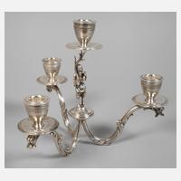 wohl Anfang 19. Jh., Beschauzeichen Berliner Bär mit Buchstabe M, zwei weitere gestempelte Buchstaben E, Tremolierstrich, mehrteilig gefertigtes Türmchen, teils mit feiner Silberdraht-Biegearbeit, verziert mit Ornamentbändern, reliefierten Floralismen und steigenden bekrönten Löwen mit Schriftkartuschen, nicht ganz komplett, Alters- und Gebrauchsspuren, H 23,5 cm, G ca. 90 g.
