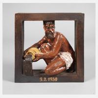 Mitte 20. Jh., am Boden ungedeutetes Monogramm SI?, Kupferblech getrieben und mehrteilig verschweißt, stilisierter Pinguin auf unregelmäßiger Plinthe, Oberfläche mit Altersspuren, H 16,5 cm.