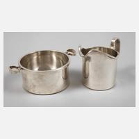 Entwurf Bertel Gardberg (1916-2007), 1970er Jahre, Silber gestempelt 925, mit Krone im Herz für Finnland und Stadtpunze Turku, Hersteller Kultateollisuus Oy Helsinki, schlichte zylindrische Form mit verdicktem Rand und angesetzten geometrischen Handhaben, geringe Alters- und Gebrauchsspuren, H max. 8,5 cm, G zusammen ca. 276 g.