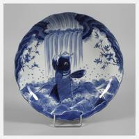 Anfang 20. Jh., am Boden mit Stempelmarke, Porzellan in kobaltblauer Unterglasurbemalung, gemuldetes Modell mit sternförmig angeordnetem Dekor, zentrale Landschaftsdarstellung, gerahmt von sieben weiteren Ansichten sowie Floraldekor, etwas brandfleckig, sonst guter Zustand, D 39,5 cm.