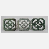 Ende 19.Jh., heller Scherben in grünlicher und grauer Laufglasur, quadratische Kacheln mit Durchbruchdekor, leichte Altersspuren, minimal bestoßen, Maße je ca. 35 x 35 cm.