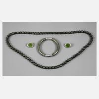 unbestimmten Alters, heller bzw. rötlicher Scherben, teils grünlich glasiert, bestehend aus Schale, Miniaturvasen mit Bodenöffnung und zwei stehenden Ganzfiguren, unterschiedliche Maße und Erhaltung, L max. 13 cm.