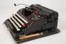 um 1944, gemarkt Groma Modell N, G. F. Grosser, Fabrik für Büromaschinen Markersdorf/Chemnitztal, geschwärztes Metallgehäuse, auf Taste 3 die Runen der Schutzstaffel (Zeichen auf Taste nach 1945 geändert, im Anschlag noch vorhanden), im originalen Etui, funktionstüchtig, Mechanik reinigungsbedürftig, Maße 15 x 33 x 32 cm.