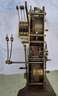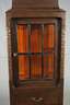 Ausführung wohl Deutsche Werkstätten Dresden-Hellerau, um 1910, ungewöhnliches Gehäuse in Form einer Pfeilervitrine mit vier Schubladen, Eiche massiv, braun gebeizt, seitlich floral beschnitzte Säulen, die Gläser mit Facettschliff, geprägtes Messingziffernblatt mit arabischen Zahlen, gerahmt von einer sich in den Schwanz beißenden Schlange als Zeichen der Unendlichkeit, Werk mit drei Federhäusern und Melodiegong auf 6 Tonstäben, Viertelstundenschlag, Kurzpendel, Werk ist gehfähig, Schlagwerk müsste justiert und gereinigt werden, Maße 207 x 50 x 33 cm.