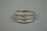 neuzeitlich, Weißgold gestempelt 750, sich auf 10 mm verbreiternder Ringkopf, besetzt mit zahlreichen Brillanten und Diamanten im Baguetteschliff, Gesamtgewicht ca. 1 ct, minimale Tragespuren, RW 20 mm, G ca. 7 g, beigegeben Schmuckexpertise.