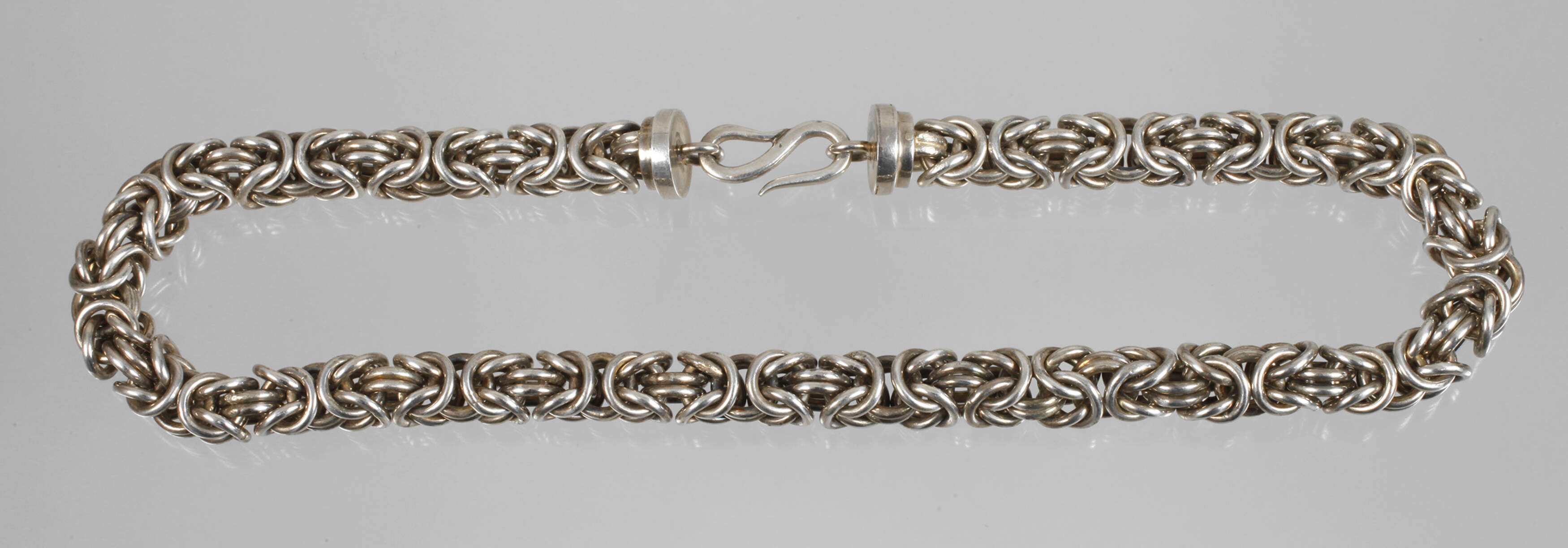 neuzeitlich, Silber geprüft, ca. 9 mm breite Königskette mit Hakenverschluss, L ca. 40 cm, G ca. 124,3 g.