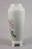 Entwurf Heinz Schaubach 1919, grüne Stempelmarke mit Zusatz Kunstabteilung 1915-1926 und Prägebuchstabe B, Porzellan, schlanke Balustervase mit anmodelliertem, vierfüßigem und ornamental verziertem Reliefsockel, Korpus von Weiß nach Hellblau verlaufend sowie schauseitig drei große Rosenblüten mit Blättern und Knospen in pastelltoniger Unterglasurbemalung, Sockel mit kleinen Herstellungsfehlern und minimal gechipt, sonst guter Zustand, H 44,5 cm.