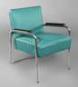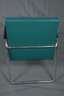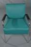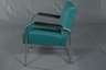1930er Jahre, verchromtes Gestell mit geschwärzten Armauflagen aus Holz, gepolsterter Sitz und Lehne, restauriert, grüner Lederbezug erneuert, Chrom Z 2, Maße 77 x 63 x 63 cm. Quelle: O. Macel, 2100 Metal Tubular Chairs, S. 123.