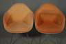 Ausführung Hermann Miller, 1970er Jahre, bestehend aus rundem Ausziehtisch und vier DAX-Schalensesseln mit originalen orangefarbenen Sitzbezügen, die Stühle an der Unterseite mit Herstelleretikett, Gestelle der Stühle mit Flugrost, Bezüge verblichen, teilweise verschmutzt, dazu runder Ausziehtisch mit einer separaten Einlegeplatte, in gutem Zustand, Maße Tisch H 71 cm, D 120 cm, L max. 165 cm.
