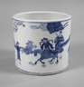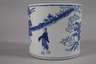 China, 20. Jh., Porzellan-Pinselbecher mit kobaltblauem Unterglasurdekor eines Reiters, nach langer Zeit einen alten Freund wiedersehend, Provenience: Sammlung Günther Stelly, Berlin, H 18,5 cm, D 20,5 cm.