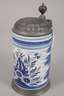 2. Hälfte 18. Jh., zwei Bayreuther und zwei Salzburger, heller Fayencescherben, bemalt mit Scharffeuerfarben auf weißlicher bzw. kleisterblauer Glasur, einer geschlickert, diverse Zinnmonturen, diese teilweise korrodiert, ein Krug mit Glasurabplatzern am Lippenrand und einer mit Glasurfehlstellen innen, insgesamt alle mit normalen Gebrauchs- und Altersspuren, H max. 24 cm.