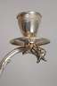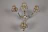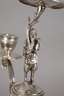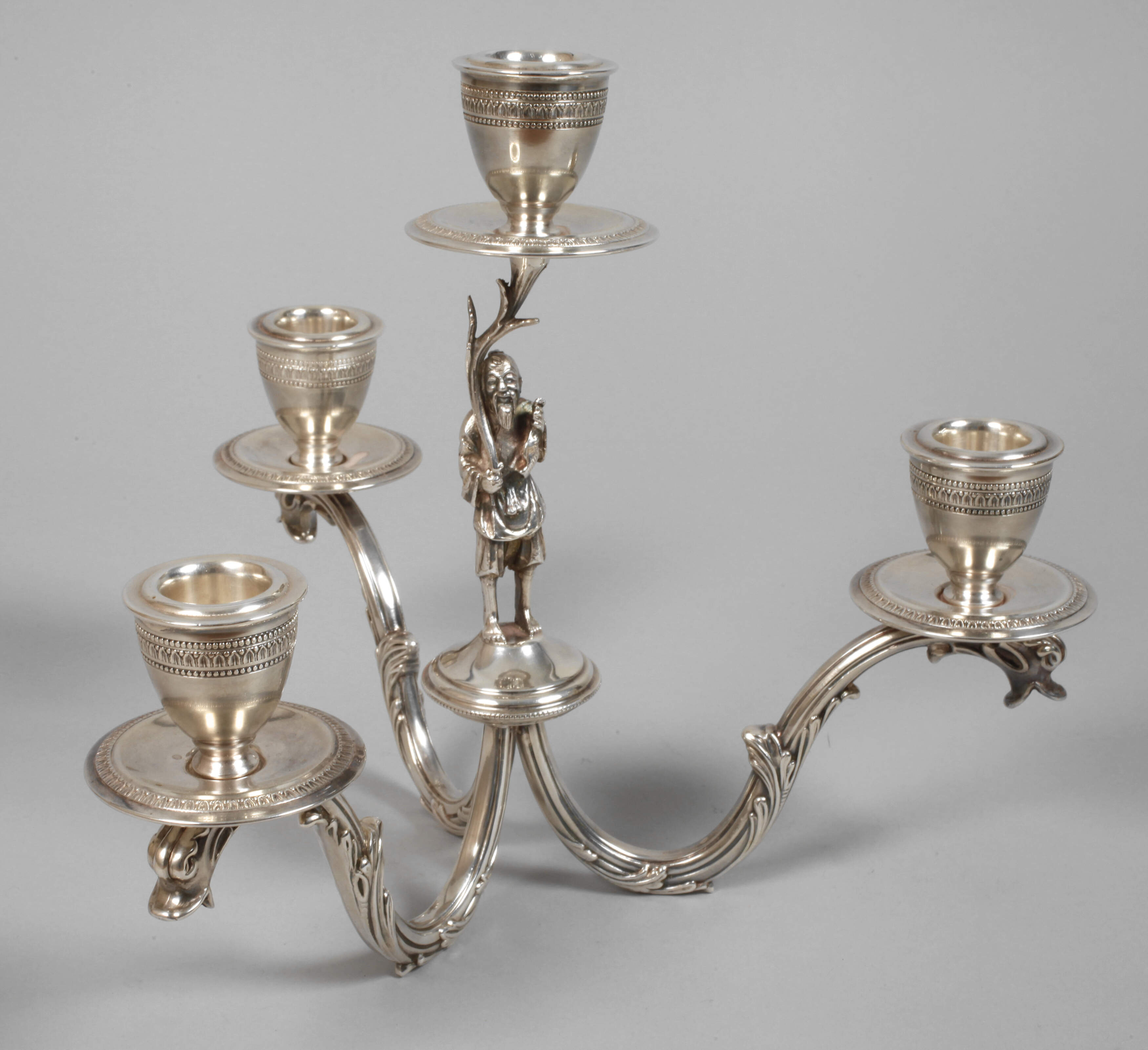 20. Jh., Silber gestempelt 800, italienische Beschaupunze 29PD für Greggio Rino, von 3 gebogenen und mit Akanthuslaub verzierten Leuchterarmen getragener Asiate, eine Mitteltülle tragend, die Tüllen schraubbar und von Lorbeerstab verziert, altersgemäß gute Erhaltung mit leichten Gebrauchsspuren, H 21,5 cm, G ca. 455 g.