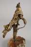um 1908, unsigniert, Bronze hell patiniert, naturalistische Darstellung eines tanzenden amerikanischen Ureinwohners in typischer Kleidung mit Federschmuck und Schärpe, naturalistischer Sockel aus Achat, dieser gebrochen und geklebt, teil des Federschmucks fehlt, H Bronze 24 cm, H gesamt 28,5 cm. Künstlerinfo: österreichischer Bildhauer (1865 Wien bis 1922 ebenda), besuchte die Klasse der Kunstakademie in Wien von Professor Laufenberg und war befreundet mit Gustav und Ernst Klimt sowie Carl Geiger, seine Vorliebe galt der Darstellung von Indianern und Figuren aus der amerikanischen Geschichte, berühmt ist die Plastik "Der ländliche Festzug" und seine Lösung des Mechanismus von bewegbaren "Wiener Bronzen", wie der bekannten "Monna Vanna", Quelle: Wiener Bronzen, von Dietmar Seiler und Peter Stauber 1991.