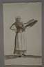 zwei stehende junge Frauen in Tracht, Tusche, laviert in Grau und Braun auf dünnem Papier, 2. Hälfte 19. Jh., im Randbereich kleinere Einrisse und minimal knitterspurig, Maße ca. 20 x 12,5 cm.