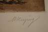Gebirgslandschaft, mit Blick vorbei an barocker Gartenvase und knorrigem Laubbaum, in weite, sanft bewegte Sommerlandschaft mit Burg am Horizont, großformatige Radierung im warmen Sepiaton auf Karton, um 1920, rechts unten in Blei ligiert handsigniert "MHerzing", minimale Altersspuren, ungerahmt, Plattenmaße ca. 24,5 x 35,5 cm, Blattmaße ca. 43 x 60,5 cm. Künstlerinfo: eigentlich Hermine Herzing, genannt: „Blumenminni“, dt. Malerin, Radiererin, Porzellanmalerin und Illustratorin (1883 Frankfurt am Main bis 1968 Karl-Marx-Stadt), erster Unterricht beim Vater in Malerei und Lithographie, studierte an der Akademie Hanau, zunächst tätig als Entwurfszeichnerin für Stickereien und Handarbeiten, 1910–34 in Dresden, hier Schülerin von Georg Hermann Gelbke und Willy Kriegel, ab 1934 tätig in Chemnitz (Karl-Marx-Stadt), Quelle: Vollmer und Wikipedia.