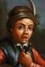 größerer Junge mit Brummtopf, um ihn herum jüngere toolende Kinder, zur Rechten ein Junge mit Triangel, vor dörflich anmutender Kulisse, frei dem Stil Adriaen von Ostades (1610-1685) nachempfunden, Öl auf Holz, 18./19. Jh., Retuschen und rückseitig hinterlegter vertikaler Einriss, gerahmt, Falzmaße ca. 48 x 36,5 cm.
