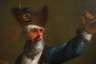 an seinem Schreibtisch sitzender älterer Mann in vornehmer Kleidung, in einem von ihm gegen das Licht gehaltenen Glaskolben blickend, im Hintergrund Regal mit zahlreichen Gefäßen, mit spitzem Pinsel ausgeführte Malerei, Öl auf schwacher Eichenholztafel, 18. Jh., laut Einliefererangaben Zuschreibung an Christian Wilhelm Ernst Dietrich (genannt Dietricy), einige Retuschen, Kratzspur im unteren Bereich, in schwarzen Rahmen mit Eckquadraten gerahmt und hierauf neueres Messingschild "Dietrich", Falzmaße ca. 26 x 20 cm.
