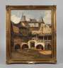 sommerlich-sonnige Ansicht des Innenhofs der Zollburg Pfalzgrafenstein auf der Insel Falkenau bei Kaub im Rhein mit Blick auf die Bogenarkaden, Wehrgänge und Wehrtürme sowie das Haupttor unter duftig bewölktem Himmel, das Gemälde entstand in Sachs´ Wiesbadener Zeit, hierzu bemerkt Seubert 1879: "... Als Landschaftsmaler zeichnet er sich durch reges Streben nach Naturwahrheit aus; seine Auffassung ist eine sinnige; er versteht sich namentlich auf Lufteffekte. Auf Reisen im Rhein- und Lahngebiet, in der Eifel, im Taunus, in Oberbayern und Tirol hat er sich die Motive zu seinen Bildern geholt ...", stimmungsvolle, fein mit spitzem Pinsel festgehaltene romantische Architekturmalerei, Öl auf Leinwand, rechts unten signiert, datiert und undeutliches Ortskürzel "Michael Sachs [18]64 ...", rückseitig Rahmungsetikett Nürnberg, Keilrahmen gering durchzeichnend, restauriert, im Goldstuckrahmen (bestoßen) gerahmt, Falzmaße ca. 57 x 48 cm. Künstlerinfo: eigentlich Michael Emil Sachs, dt. Landschaftsmaler (1936 Hadamar/Hessen-Nassau bis 1893 Partenkirchen), zunächst Ausbildung und Tätigkeit als Theologe, studierte 1855–58 an der Akademie Karlsruhe bei Johann Wilhelm Schirmer, 1858–60 bei Oswald Achenbach in Düsseldorf, 1860–65 in Wiesbaden tätig und Schüler von Scheuer, anschließend freischaffend in Partenkirchen, hier Gründung einer Zeichenschule für Holzschnitzer, später im Auftrag des bayerischen Staates Gründer und 1869–80 Leiter der Distriktschnitzschule des Werdenfelser Landes in Partenkirchen, erhielt diverse Ehrungen wie 1863 eine Medaille, später die Große Gold-Medaille für Kunst und Wissenschaft und den herzoglich-nassauschen Adolforden, Quelle: Thieme-Becker, Müller "Biographisches Künstler-Lexikon", Boetticher, Saur Bio-Bibliographisches Lexikon, Bruckmann "Lexikon der Düsseldorfer Malerschule", Mülfarth, Müller-Singer, Seubert und Wikipedia.