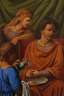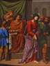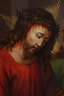 neutestamentarische Szene der Passion Christi, welche den dornengekrönten, verurteilten Jesus Christus vor dem Statthalter Judäas, Pontius Pilatus zeigt, welcher sich symbolisch "die Hände in Unschuld" wäscht, lasierende religiöse Genremalerei, Öl auf Papier und Leinwand, wohl 19. Jh., unsigniert, Craquelure, etwas restauriert, neuzeitlich gerahmt, Falzmaße ca. 102 x 78 cm.