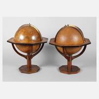 um 1930, gemarkt Otto Herkt Geographischer Verlag Leipzig, gedrechselter Fuß aus dunkelbraun lackierter Buche mit eingelassenem Kompass, Messingmeridian, papierbespannter Massekorpus, Oberfläche mit Altersspuren, H ca. 62 cm.