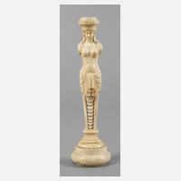 um 1880, Elfenbein fein beschnitzt, in Form einer Karyatide, ehemaliges Zierteil eines Historismusmöbels, Altersspuren, H 19 cm.