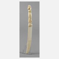 Anfang 20. Jh., aus einem Stück gearbeitet und fein reliefiert, geschwungene Klinge mit ornamental verziertem Griffstück, dieses mit Abschluss in Form einer vollplastisch gearbeiteten Hand, min. bestoßen, wohl nicht ganz komplett, L 25,5 cm.