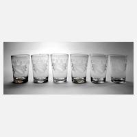 Thüringen, um 1730, klares, leicht blasiges Glas mit Abriss, konische Form, Besitzermonogramm CH G V.S., das Wappen in feinem Mattschliff, eins am Lippenrand bestoßen, Höhe von 12,5 bis 13 cm.