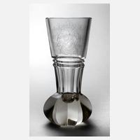 Schlesien, 1. Hälfte 19. Jh., klares Glas, ausgekugelter Abriss, Fuß und Wandung facettiert, zwei ovale Kartuschen mit feinem Mattschliff, Ansichten von Altwasser und Salzbrunn, leichte Gebrauchsspuren, H 12 cm.