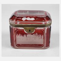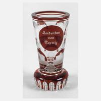 19. Jh., klares Glas, geschliffen und rot gebeizt, eine Kartusche mit Aufschrift: Andenken an Teplitz, gute Erhaltung, H 17 cm.