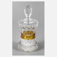 1. Hälfte 19. Jh., klares Glas, partiell gelb gebeizt, geschliffener Bodenstern, facettiert mit Kerbschliffornamentik, gute originale Erhaltung, H 18 cm.