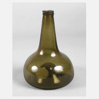 norddeutsch oder Holland, 1. Hälfte 18. Jh., grünes, etwas blasiges Glas mit tief eingestochenem Boden und Abriss, konischer Hals mit umlaufend aufgelegtem flachen Faden, stärkere Gebrauchsspuren, H 20,5 cm.