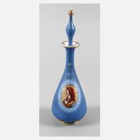 1. Hälfte 19. Jh., Milchglas mit eingestochenem Abriss, dieser mit gepinselter Nummer 7, mattblau bemalt, schauseitig ein ovales Medaillon mit gemaltem Mädchenportrait, im Hintergrund Irrgangdekor, ornamental gerahmt, partielle Vergoldung, gute Erhaltung, H 26,5 cm.