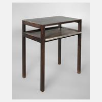 1930er Jahre, Modell T211, Buchenholz geschwärzt, quadratische Platte mit ausklappbaren Beinen, Einsatz der Platte später ergänzt, rest.bed., H 70 x B 75 x T 75 cm.