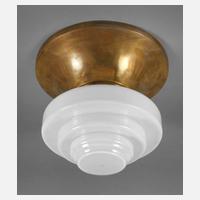 um 1930, Montierung aus vergoldetem Messingblech, getreppter Milchglasschirm, einflammig elektr., H 25 cm, D 30 cm.