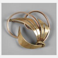 1960er Jahre, Gelbgold gestempelt 585, Herstellermarke TEKA, als stilisierte Schleife, L 4 cm, G ca. 7,6 g.