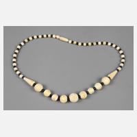 um 1930, aus fein geschnitzten Kugeln und Kegeln, dazwischen schwarze Kunststoffkugeln, Schraubverschluss, L 36 cm.