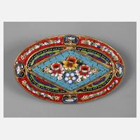 Italien, Mitte 20. Jh., gestempelt Made in Italy, Messing vergoldet, feine florale Mosaikarbeit aus buntem Glas, gute Erhaltung, L 5 cm.